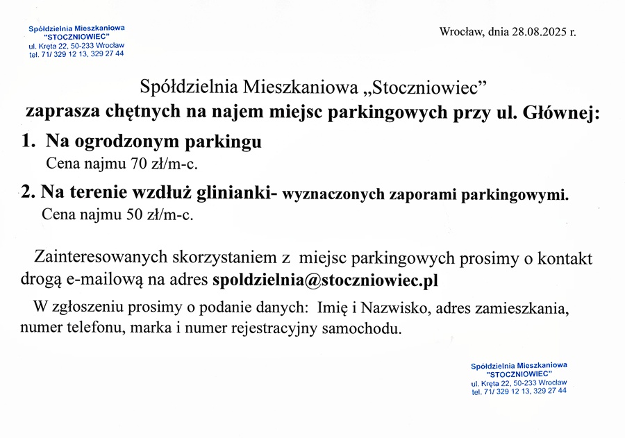 Spółdzielnia mieszkaniowa „Stoczniowiec” z siedzibą we Wrocławiu przy ul. Krętej 22, tel. 71 329 12 13 ogłasza przetarg ofertowy na dostawę i wymianę wodomierzy wody zimnej i ciepłej wraz z modułami radiowymi i ciepłomierzy z odczytem radiowym w budynkach mieszkalnych wielorodzinnych ...